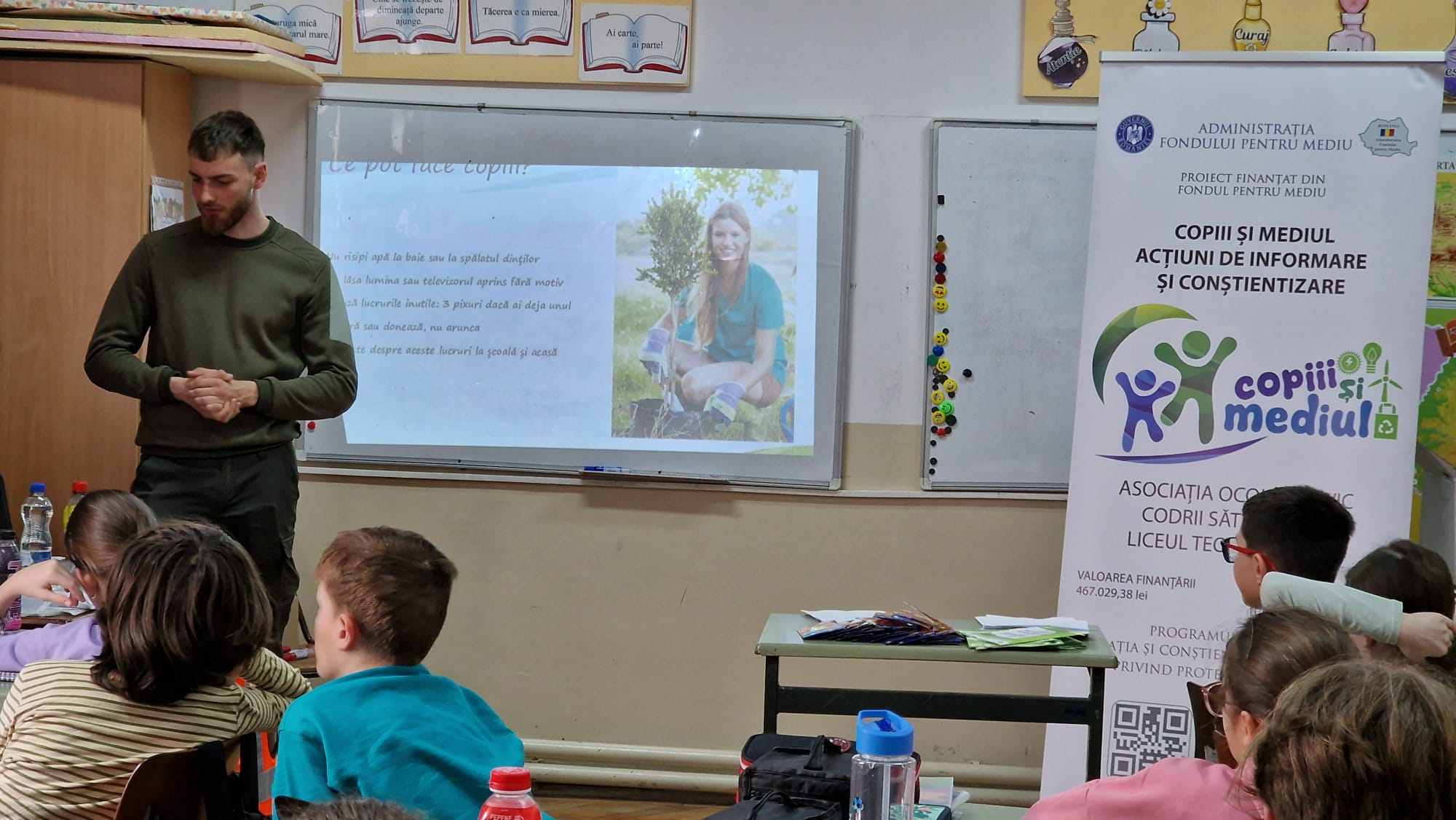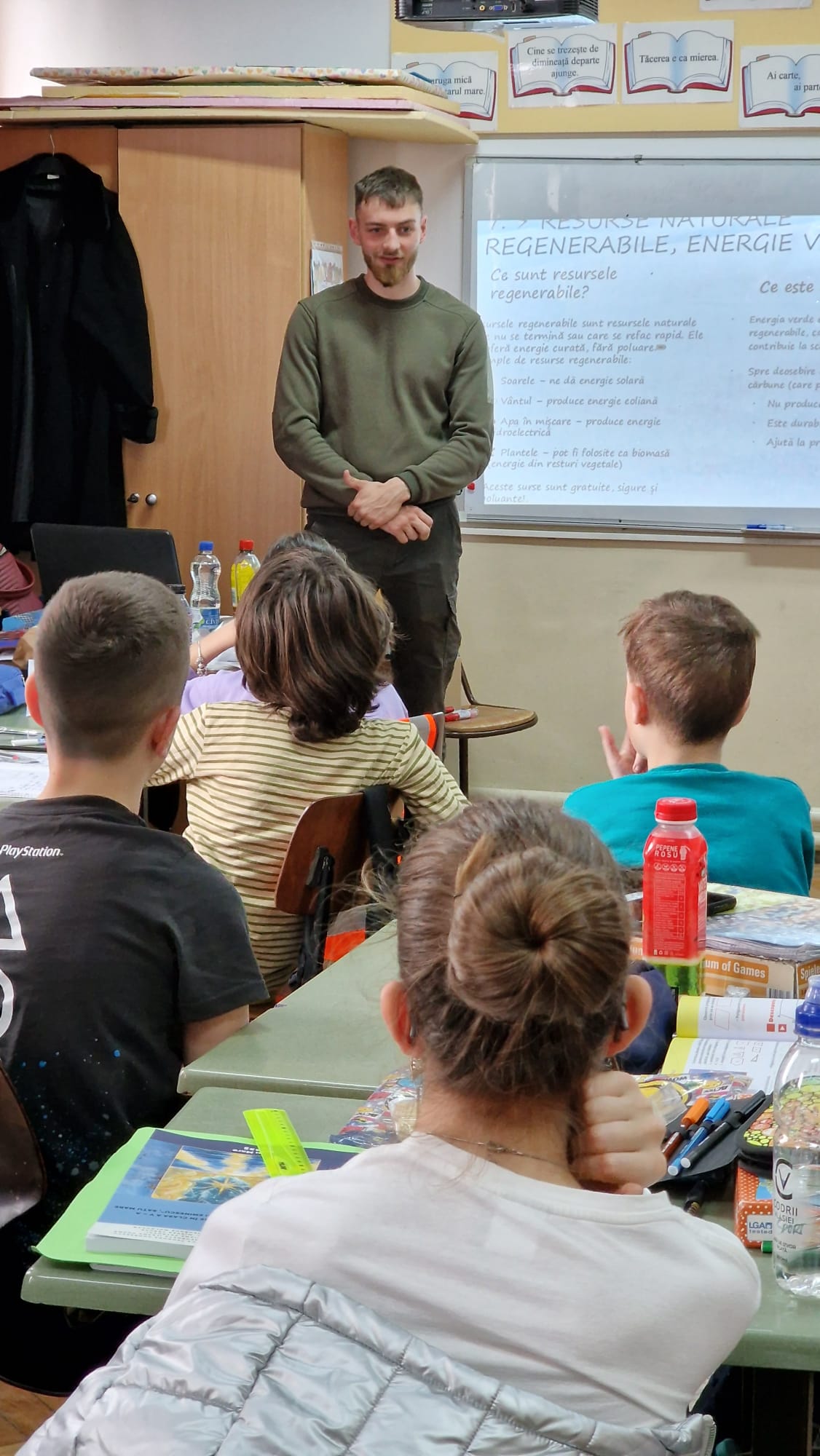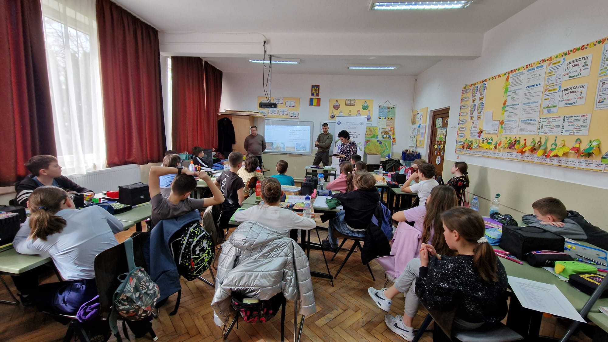 Tot în data de 26 martie, în intervalul 10:00 – 11:00, elevii clasei a IV-a A au explorat temele de mediu printr-o lecție deschisă captivantă. Copiii au demonstrat curiozitate și au pus întrebări. Accentul a fost pus pe ideea de responsabilitate individuală și pe rolul educației ecologice în viața de zi cu zi. La finalul lecției, fiecare elev a primit o broșură informativă și un plic cu semințe, încurajând astfel gândirea sustenabilă și implicarea activă în protejarea mediului chiar din propria gospodărie.