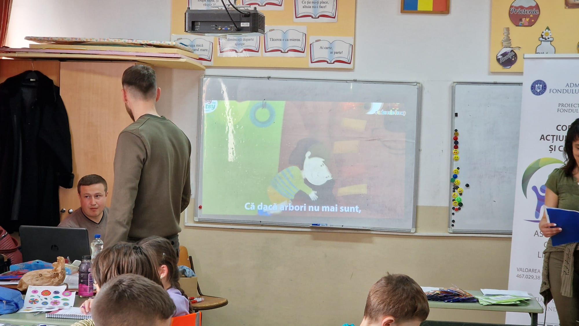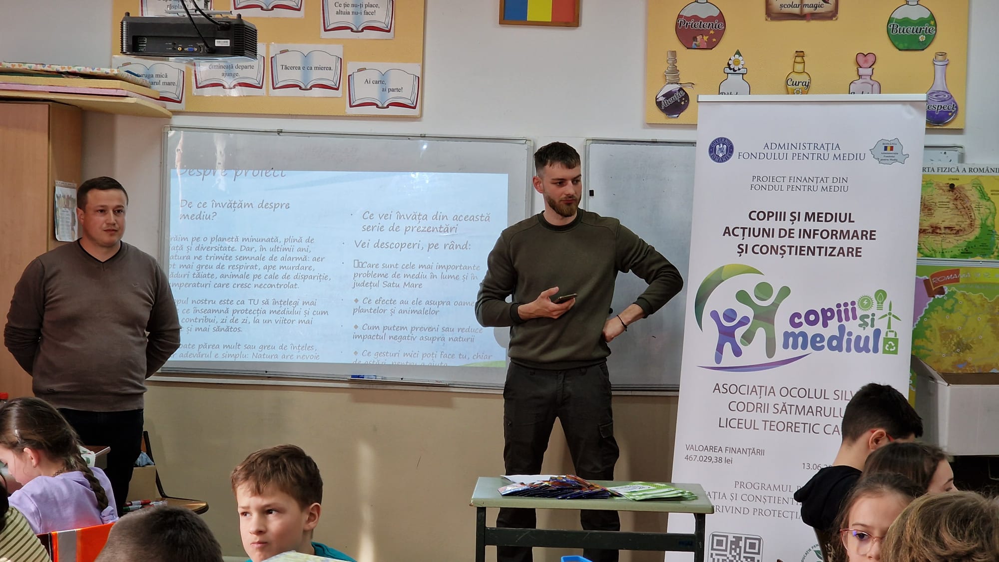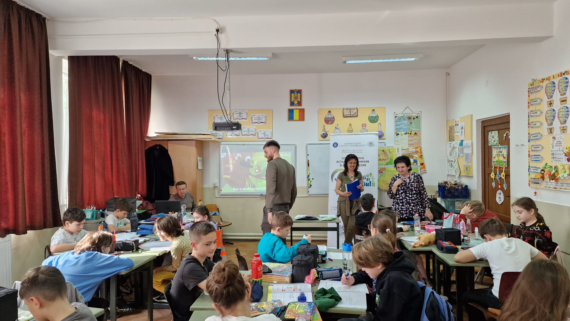 Tot în data de 26 martie, în intervalul 10:00 – 11:00, elevii clasei a IV-a A au explorat temele de mediu printr-o lecție deschisă captivantă. Copiii au demonstrat curiozitate și au pus întrebări. Accentul a fost pus pe ideea de responsabilitate individuală și pe rolul educației ecologice în viața de zi cu zi. La finalul lecției, fiecare elev a primit o broșură informativă și un plic cu semințe, încurajând astfel gândirea sustenabilă și implicarea activă în protejarea mediului chiar din propria gospodărie.