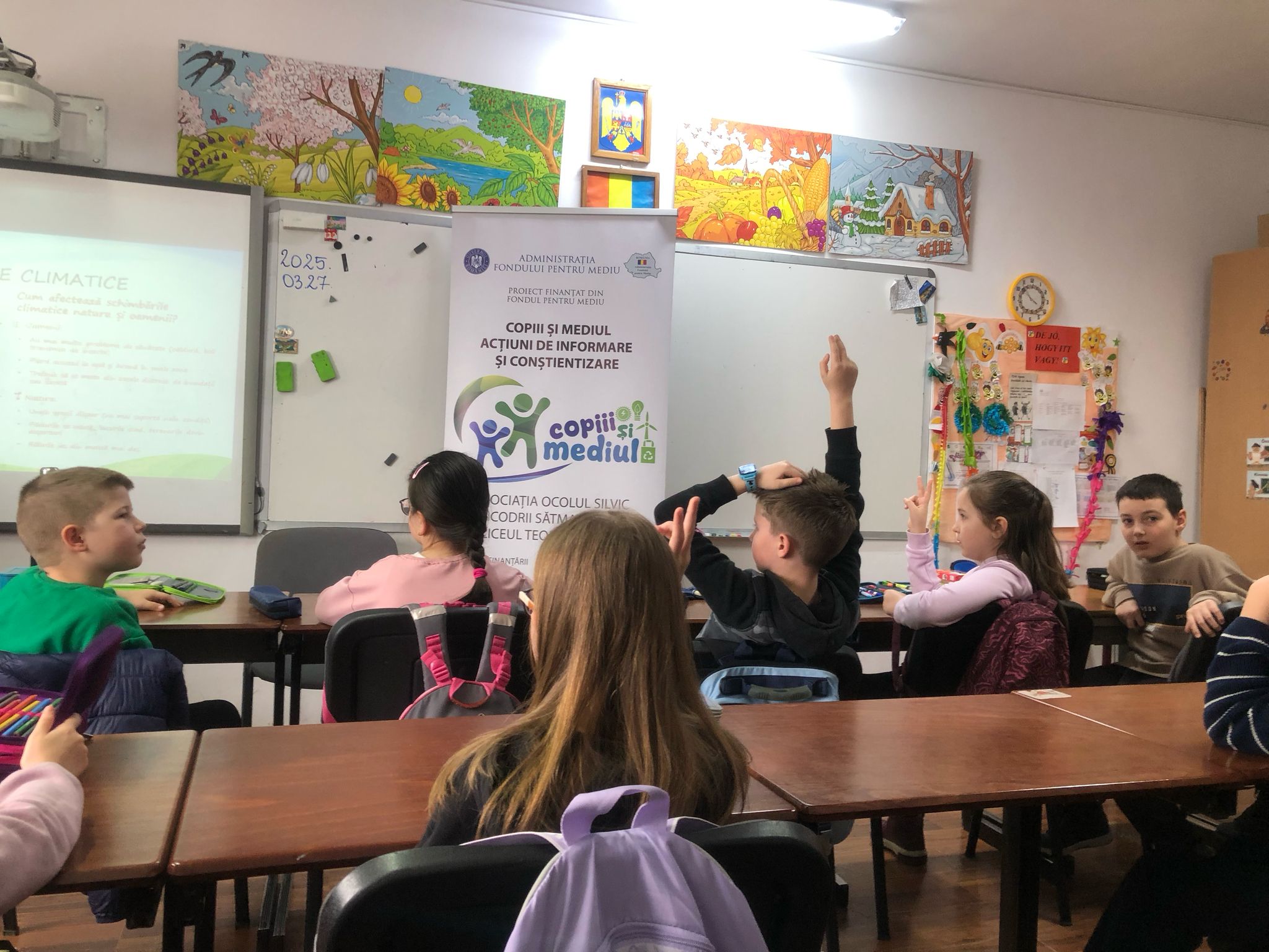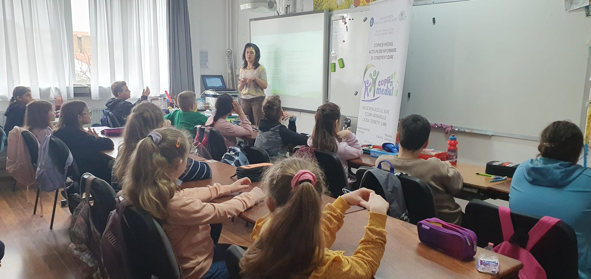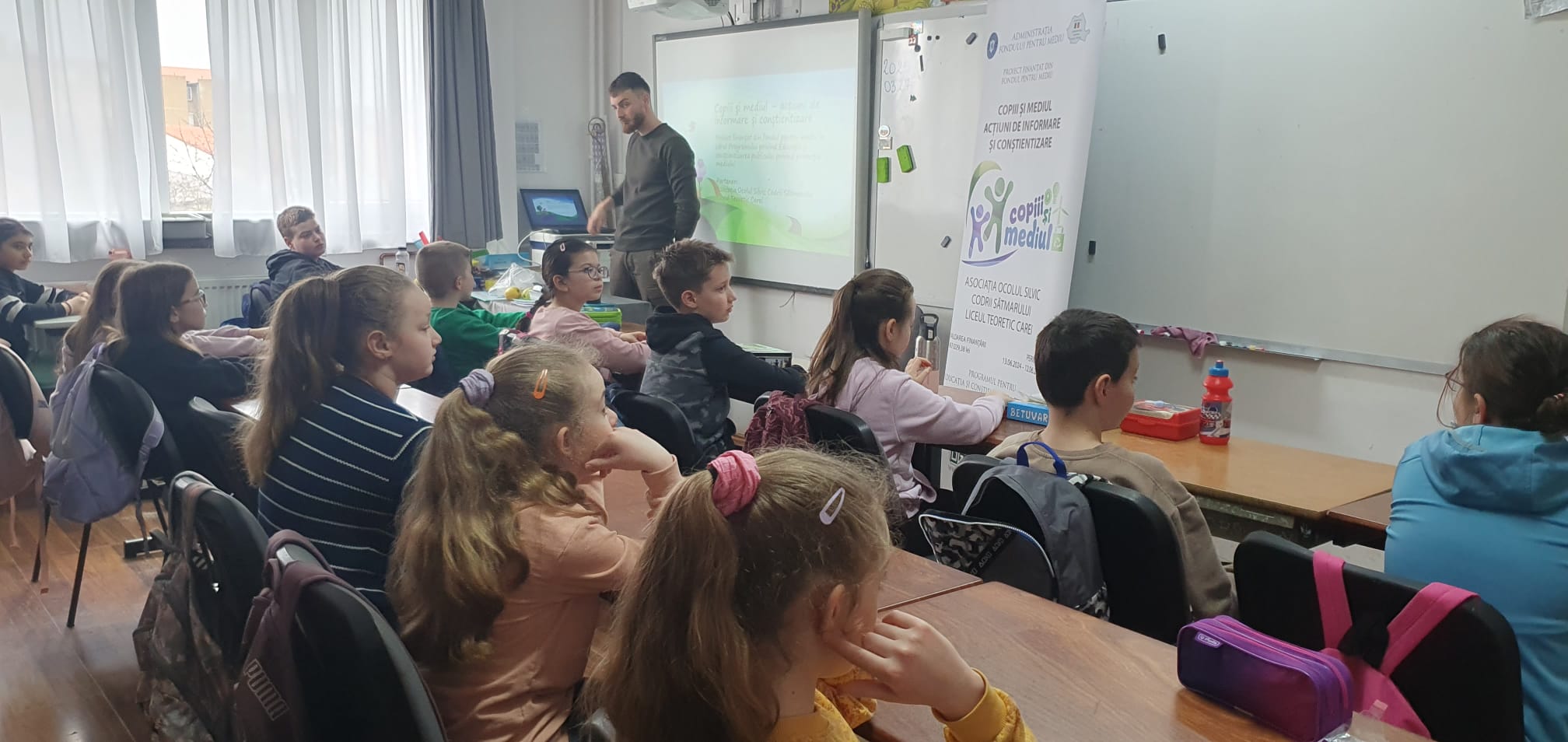 Tot în data de 27 martie, între orele 10:00 – 11:00, elevii clasei a III-a F au luat parte la o oră dedicată educației ecologice, în care au fost încurajați să devină „protectori ai naturii”. Lecția a avut ca obiectiv trezirea interesului față de protejarea planetei și înțelegerea impactului pe care fiecare dintre noi îl poate avea asupra mediului. S-a discutat despre importanța pădurilor, despre consecințele tăierilor ilegale și despre ce putem face pentru a reduce risipa. Atmosfera a fost una caldă, iar copiii au demonstrat nu doar interes, ci și dorința de implicare. La final, au primit materiale educative și semințe, marcând astfel simbolic angajamentul lor față de un mediu mai curat.