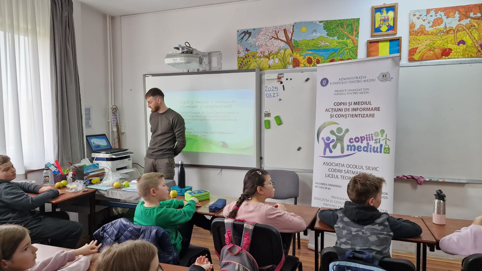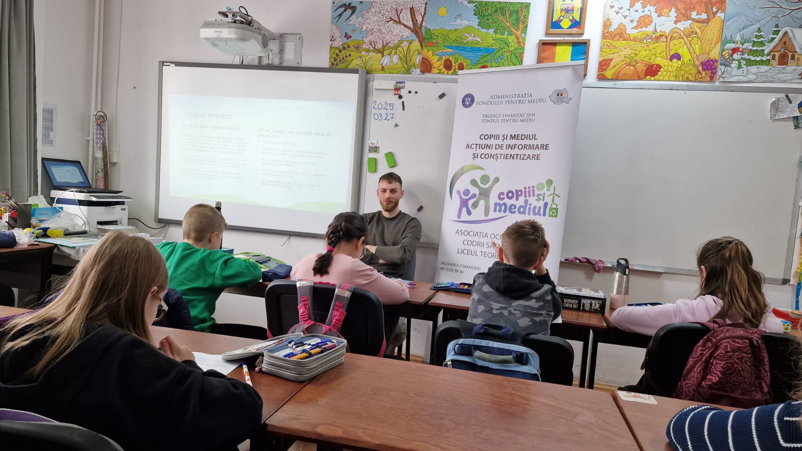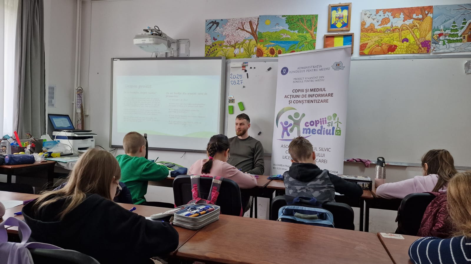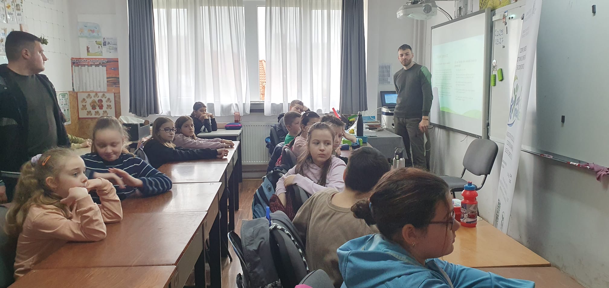 Tot în data de 27 martie, între orele 10:00 – 11:00, elevii clasei a III-a F au luat parte la o oră dedicată educației ecologice, în care au fost încurajați să devină „protectori ai naturii”. Lecția a avut ca obiectiv trezirea interesului față de protejarea planetei și înțelegerea impactului pe care fiecare dintre noi îl poate avea asupra mediului. S-a discutat despre importanța pădurilor, despre consecințele tăierilor ilegale și despre ce putem face pentru a reduce risipa. Atmosfera a fost una caldă, iar copiii au demonstrat nu doar interes, ci și dorința de implicare. La final, au primit materiale educative și semințe, marcând astfel simbolic angajamentul lor față de un mediu mai curat.