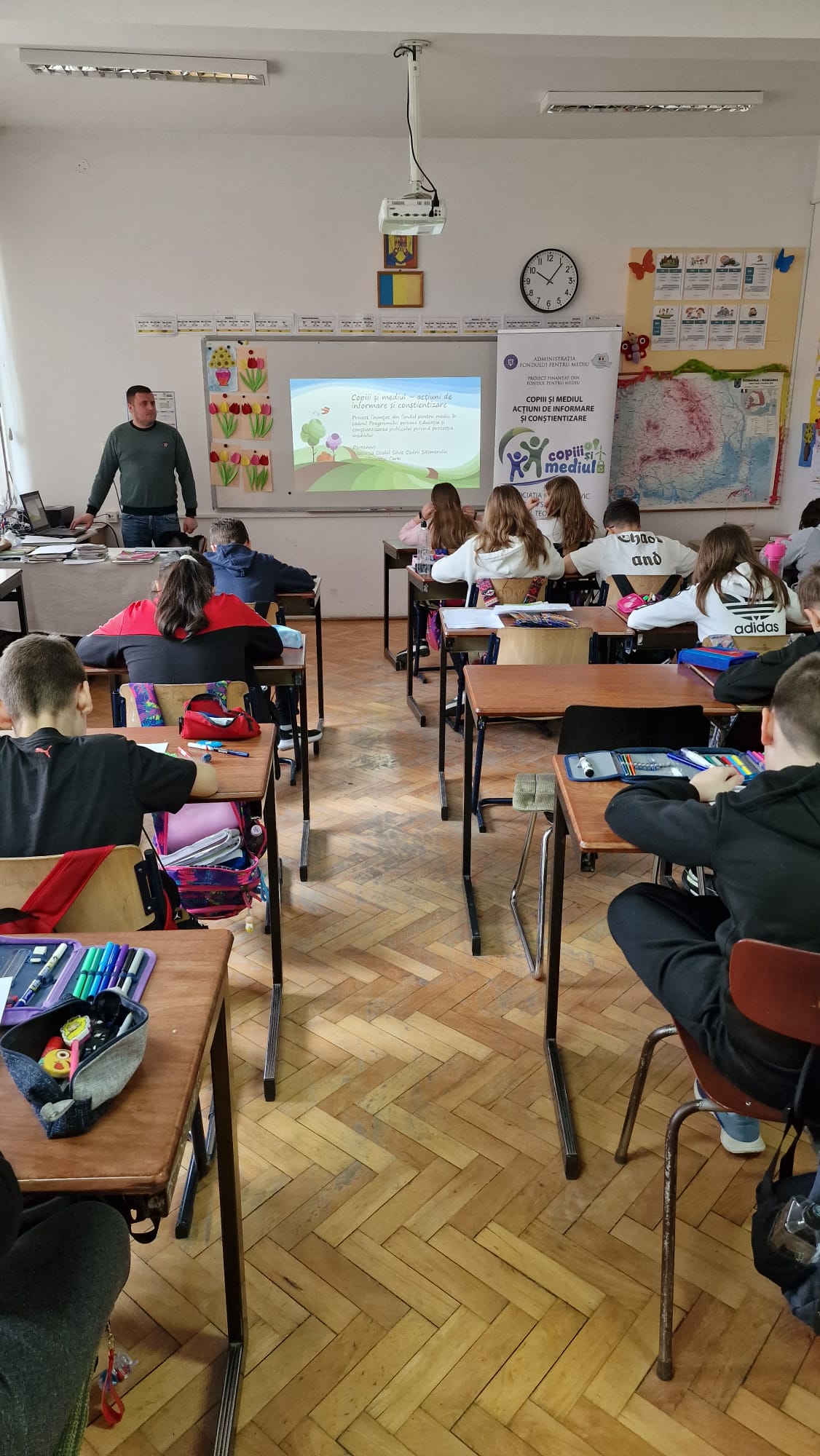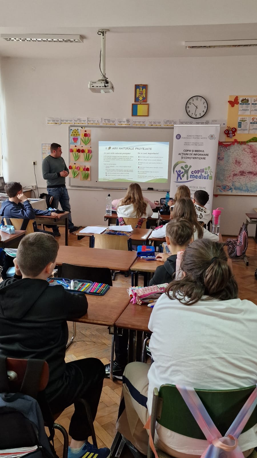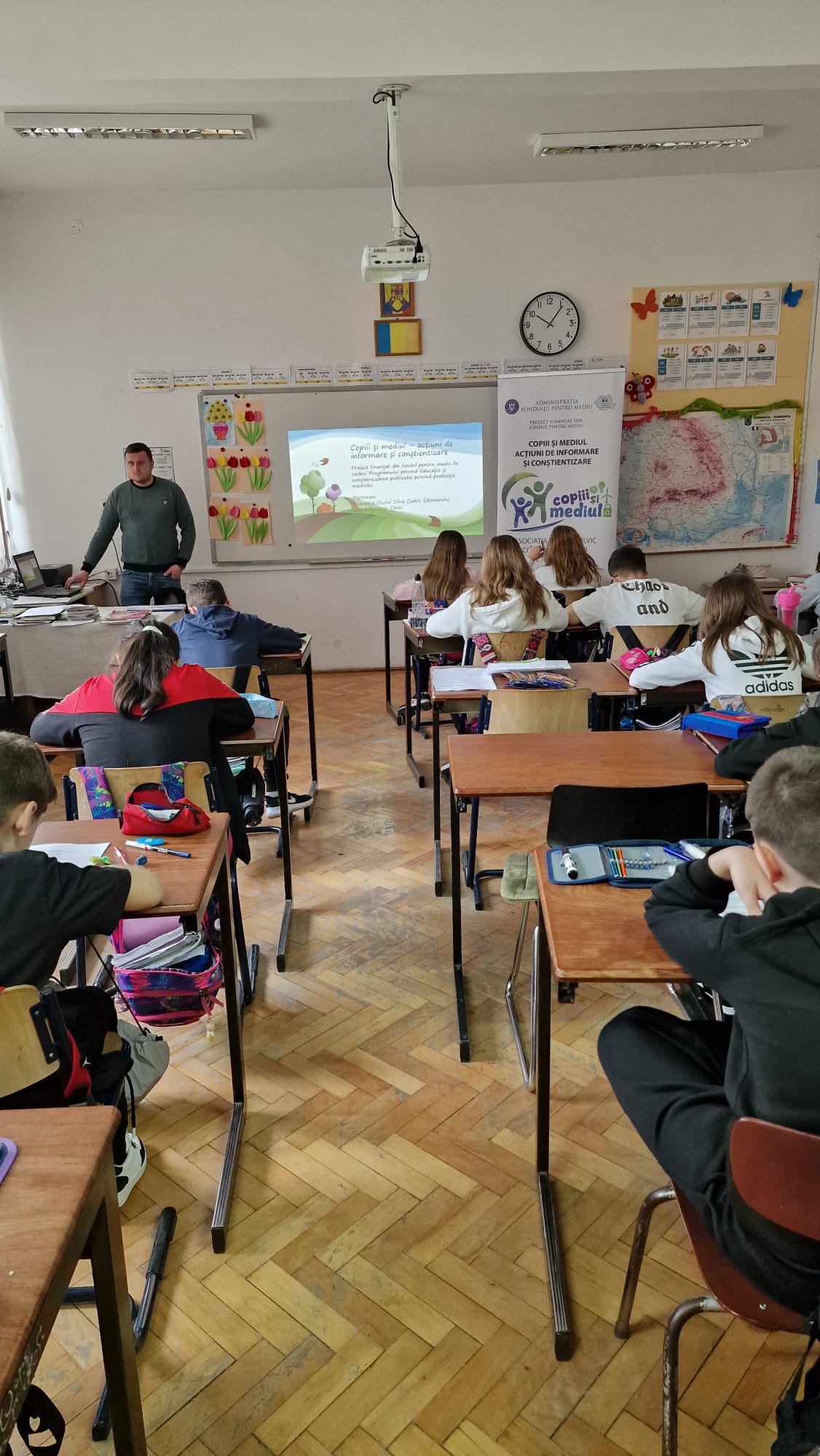 Tot în data de 10 aprilie, în intervalul 10:00 – 11:00, elevii clasei a IV-a B au fost parte dintr-o lecție vie despre grijă, implicare și responsabilitate față de mediu. Discuțiile s-au axat pe probleme actuale precum poluarea apelor, schimbările climatice și efectele plasticului asupra ecosistemelor. Elevii au demonstrat o gândire matură, oferind soluții practice și arătând interes real pentru mediu. Lecția a fost completată de materialele informative și semințele de flori oferite, încurajând continuitatea acestor valori și dincolo de sala de clasă.