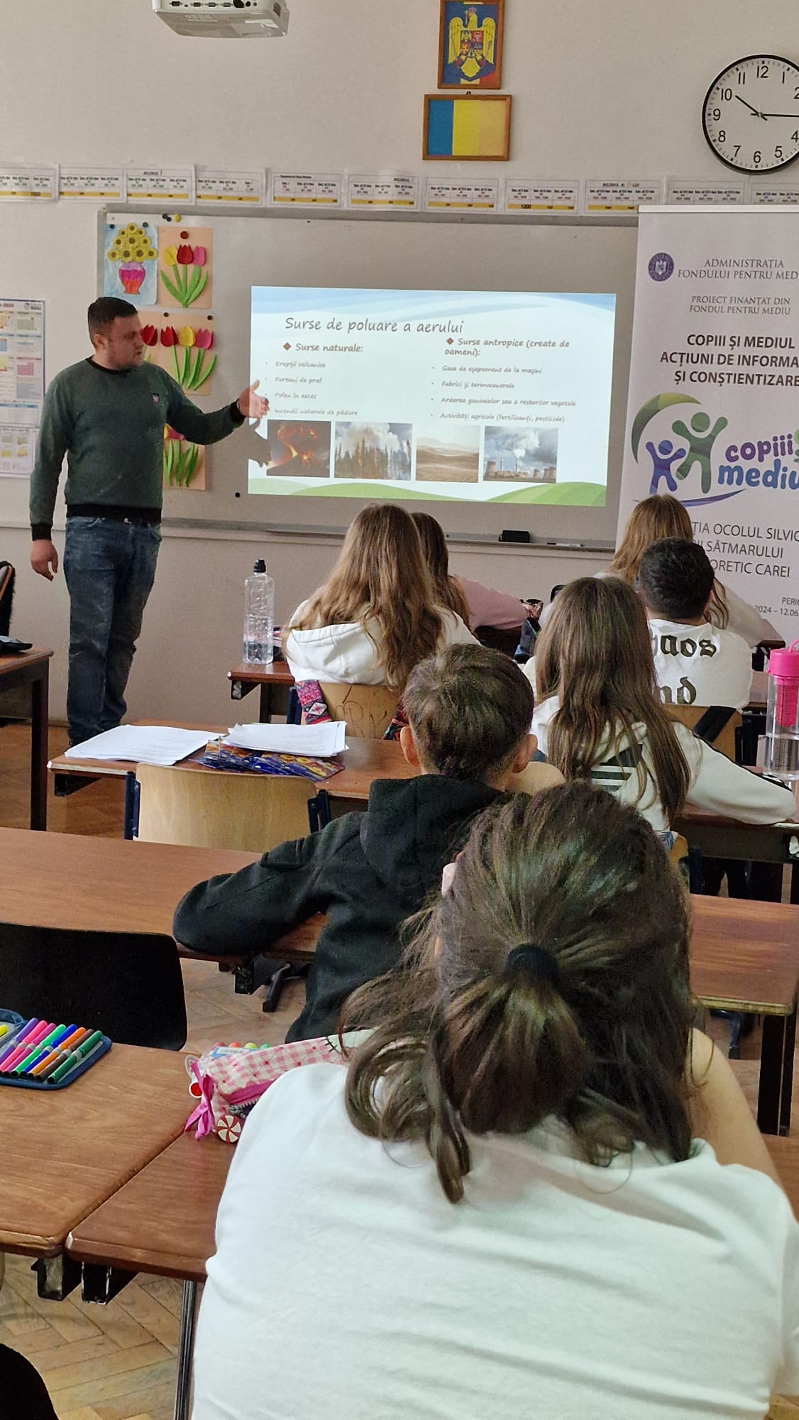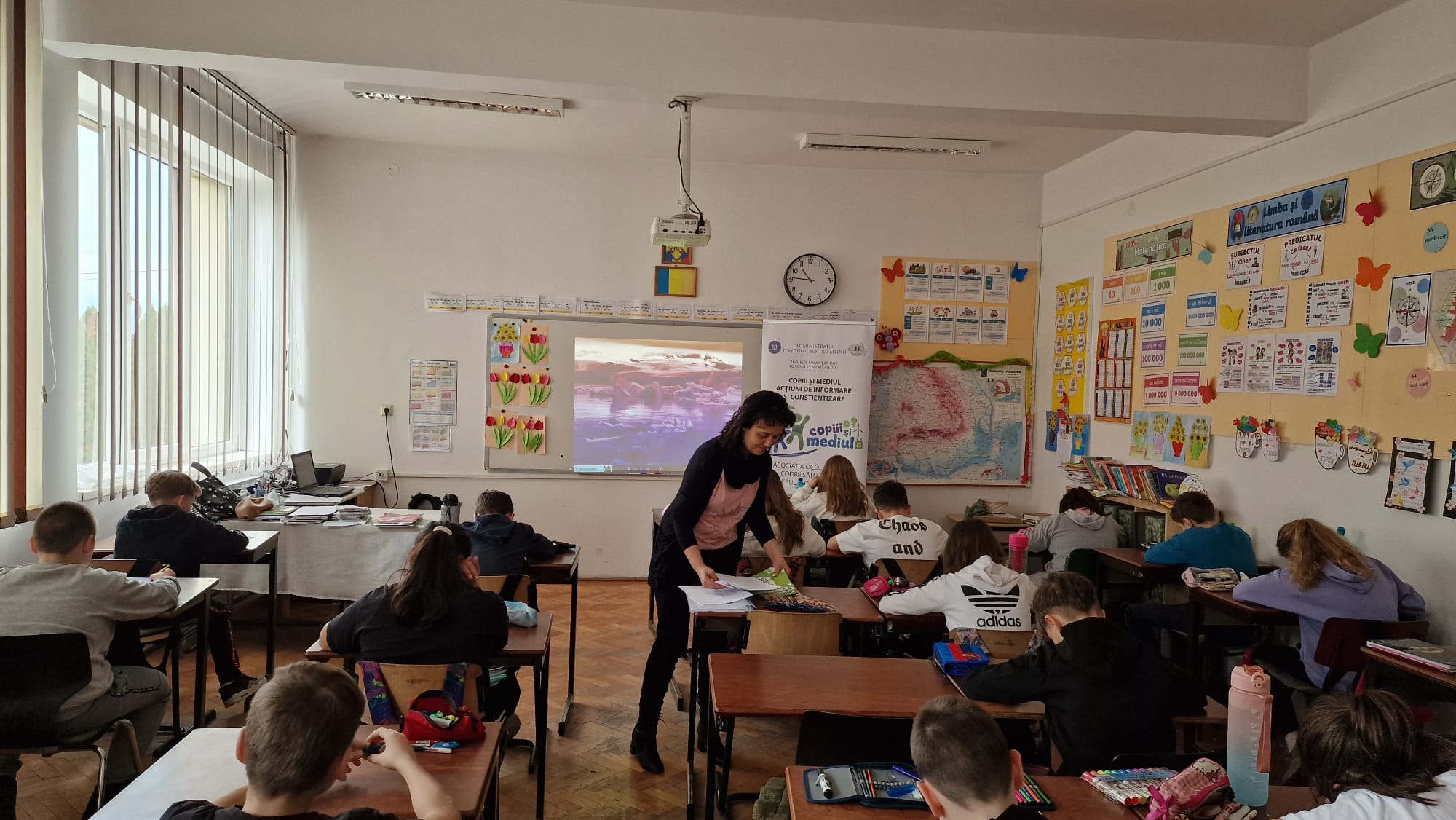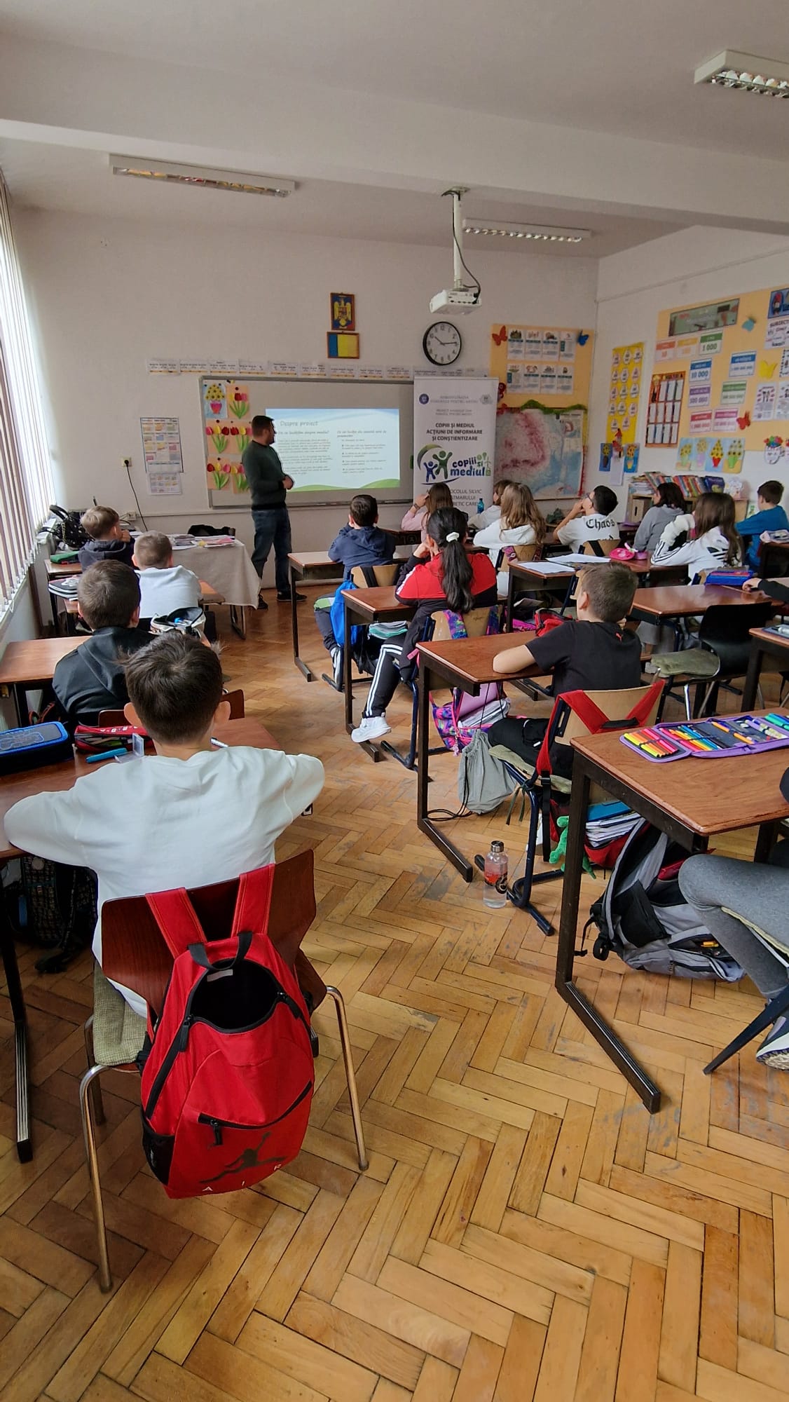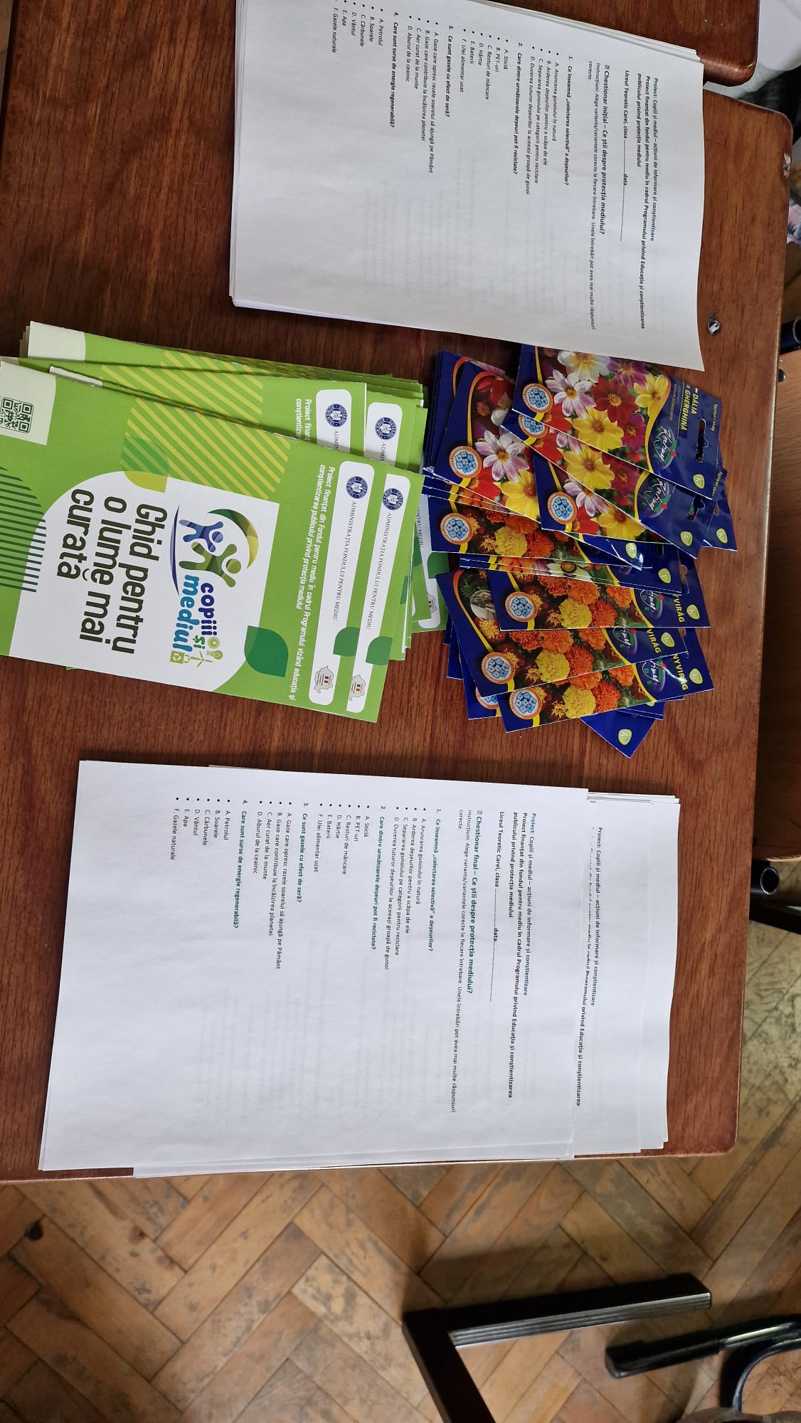 Tot în data de 10 aprilie, în intervalul 10:00 – 11:00, elevii clasei a IV-a B au fost parte dintr-o lecție vie despre grijă, implicare și responsabilitate față de mediu. Discuțiile s-au axat pe probleme actuale precum poluarea apelor, schimbările climatice și efectele plasticului asupra ecosistemelor. Elevii au demonstrat o gândire matură, oferind soluții practice și arătând interes real pentru mediu. Lecția a fost completată de materialele informative și semințele de flori oferite, încurajând continuitatea acestor valori și dincolo de sala de clasă.