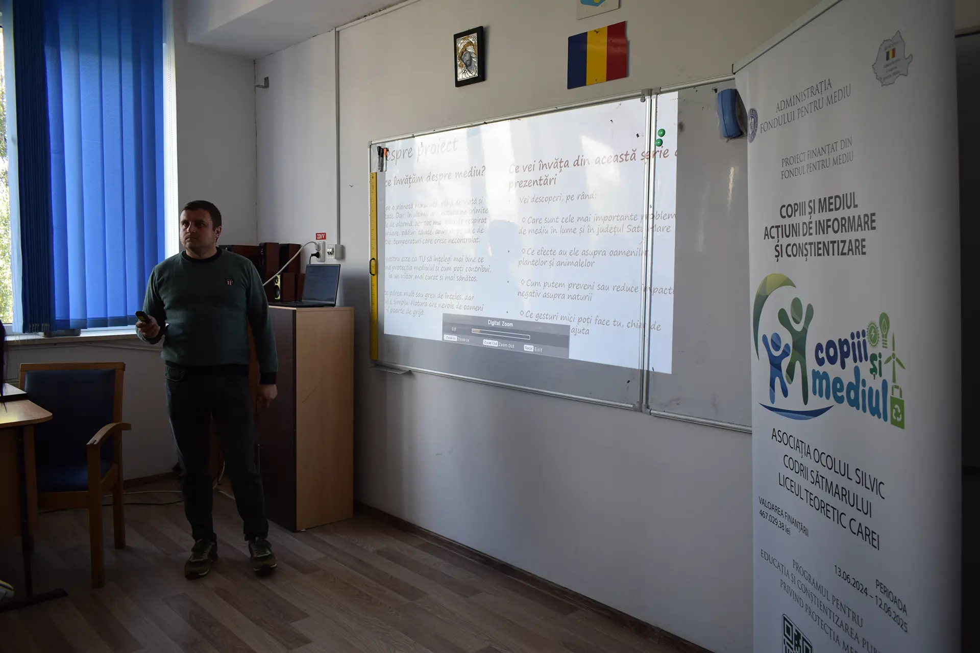 În data de 30 septembrie 2025, în intervalul 13:00 – 14:00, elevii clasei a XI-a A au participat la lecția deschisă nr. 13, dedicată educației ecologice. Ei au urmărit filmele animate ale proiectului, au descoperit resursele disponibile pe site-ul și pagina de Facebook Copiii și Mediul și au completat chestionarele inițiale și finale. Elevii au primit broșuri și semințe pentru plantare și s-au implicat activ în discuțiile despre soluții sustenabile pentru protecția mediului.