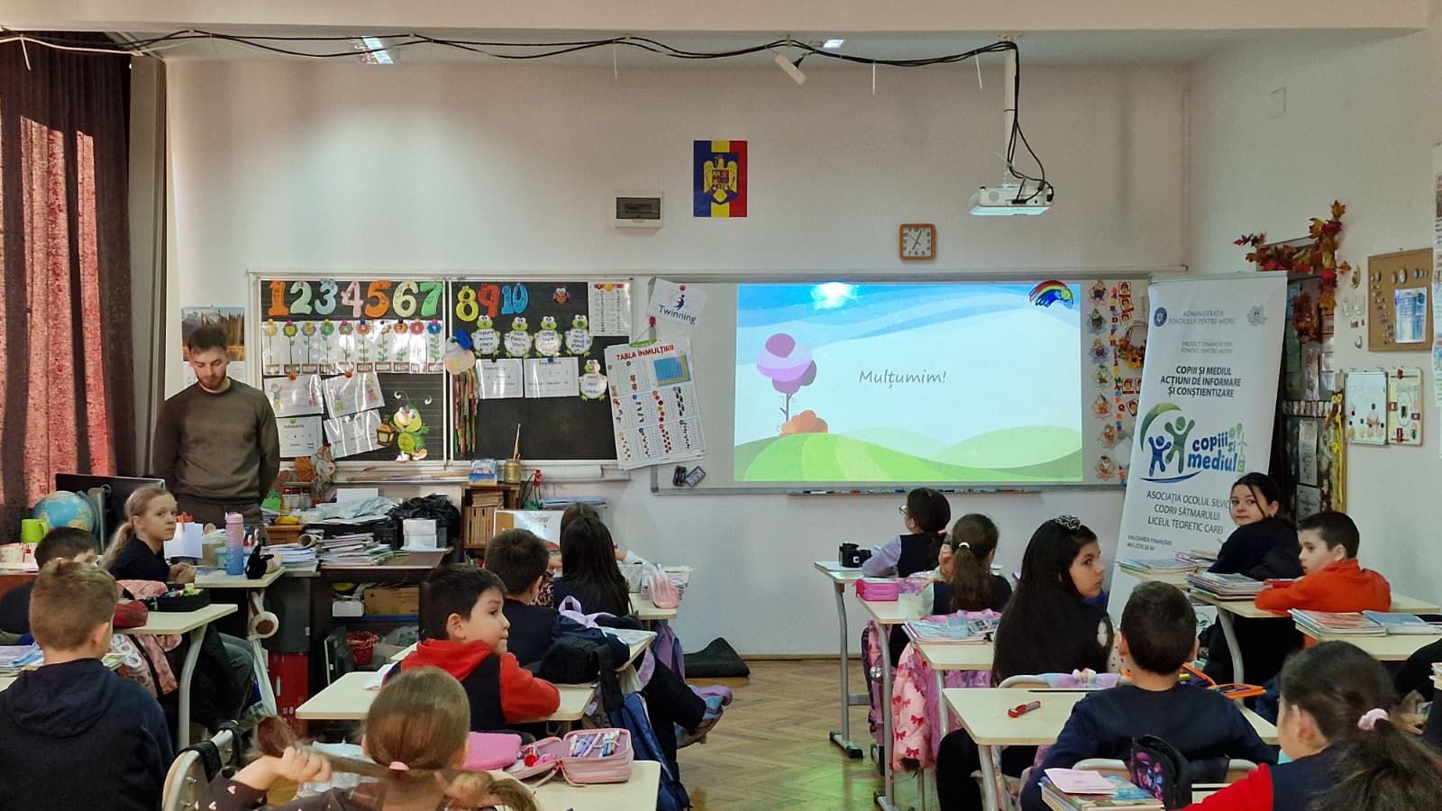 În data de 10.11.2025, în intervalul 09:00 – 10:00, elevii clasei a III-a B au participat la lecția deschisă nr. 16. Filmele animate, site-ul și pagina de Facebook au fost resurse-cheie în înțelegerea celor 16 teme de mediu. Elevii au completat chestionarele inițiale și finale și au primit broșuri și semințe pentru plantare acasă. Sesiunea a fost una activă și plină de întrebări.