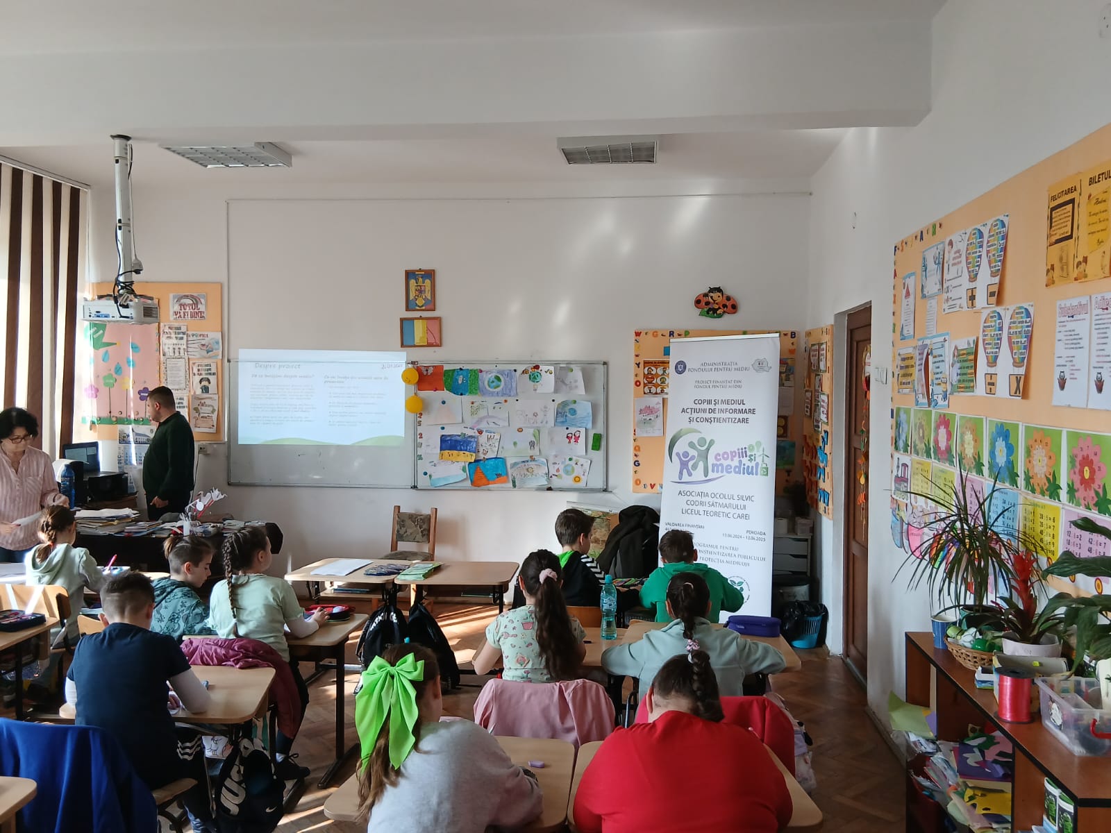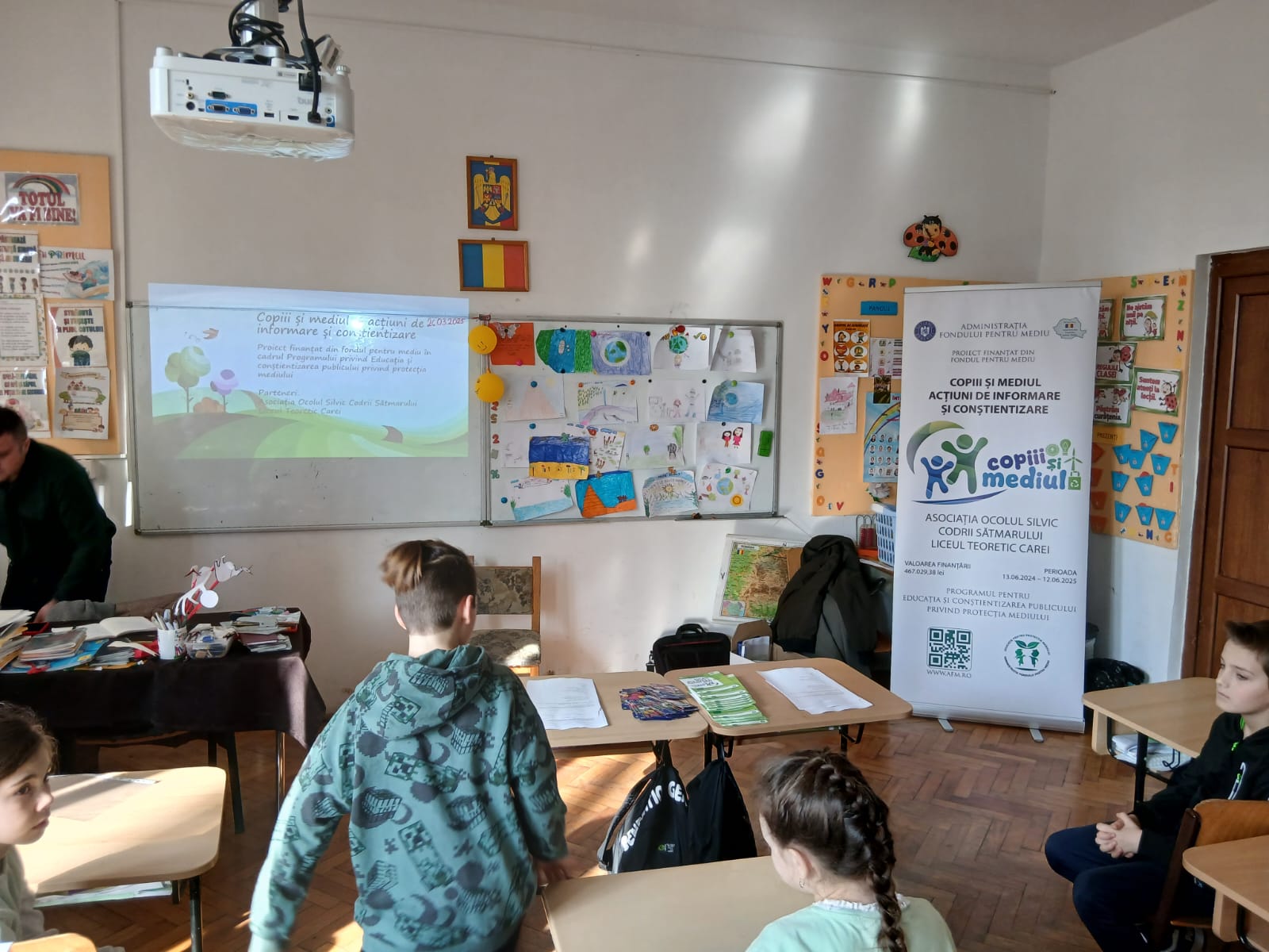 În data de 26 martie, elevii clasei a III-a A de la Liceul Teoretic Carei au dat startul seriei de lecții deschise din cadrul proiectului „Copiii și mediul – acțiuni de informare și conștientizare”. În cadrul lecției desfășurate între orele 09:00 – 10:00, elevii au fost introduși într-o poveste educativă despre cele 16 teme esențiale legate de protecția mediului, precum poluarea aerului, a apei, schimbările climatice, reciclarea și biodiversitatea. Copiii au învățat prin dialog, imagini și exemple concrete cum pot contribui la un viitor sustenabil. Entuziasmul lor a fost încurajat prin oferirea unor broșuri ilustrative și pliculețe cu semințe, pentru a planta acasă – un gest simbolic și responsabil care subliniază importanța implicării personale în protejarea naturii.